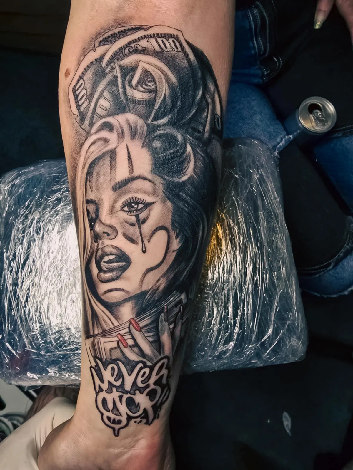 You will sit in a private space while you get your tattoo.